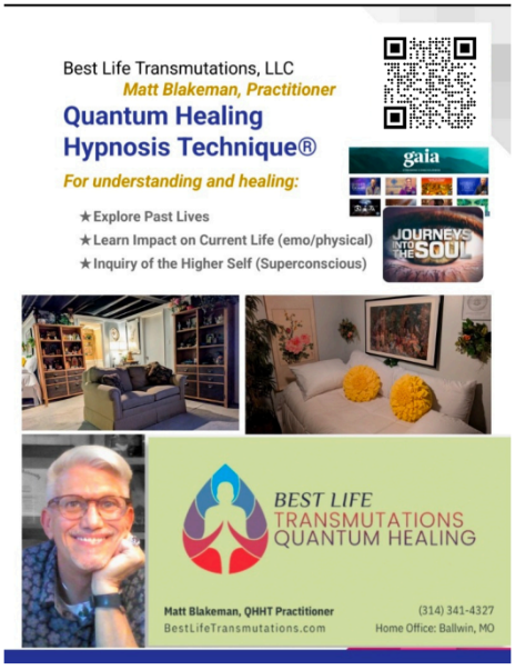 Best Life Transmutations is a client-forward hypnosis program - Quantum Healing Hypnosis Technique (QHHT) - established by Dorlores Cannon to inquire into your soul's purpose, discover karmic imbalanes with and thru past life regression, and incorporate and receive wholeness from your Higher Self, or Subconscious.